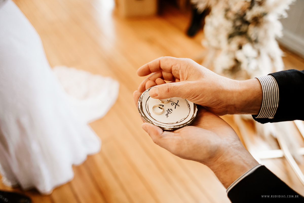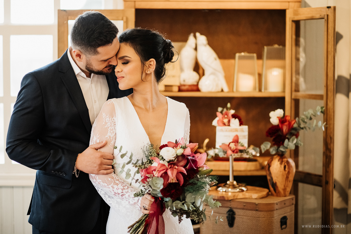 O amor por viagens já era algo latente, por isso, o noivo escolheu fazer o pedido em uma delas. Subiram a serra fluminense, Petrópolis, e lá aconteceu o tão esperado pedido. Gustavo já se organizou previamente para que o momento fosse perfeito, até porque ele sabia o quanto era importante para Paula. O casal contou à nós que já estavam conformados de que teriam somente um casamento civil, sem cerimônia, por conta da realidade que estávamos vivendo: a pandemia. Então, a Paula começou a fazer suas pesquisas – claro – e viu algumas das nossas fotos em um trabalho que fiz na vinícola e ficou extremamente encantada. Ela já correu para fazer um contato e, logo depois, já encontrou a Cássia Schmitt, cerimonialista, que a ajudou no mínimos detalhes.