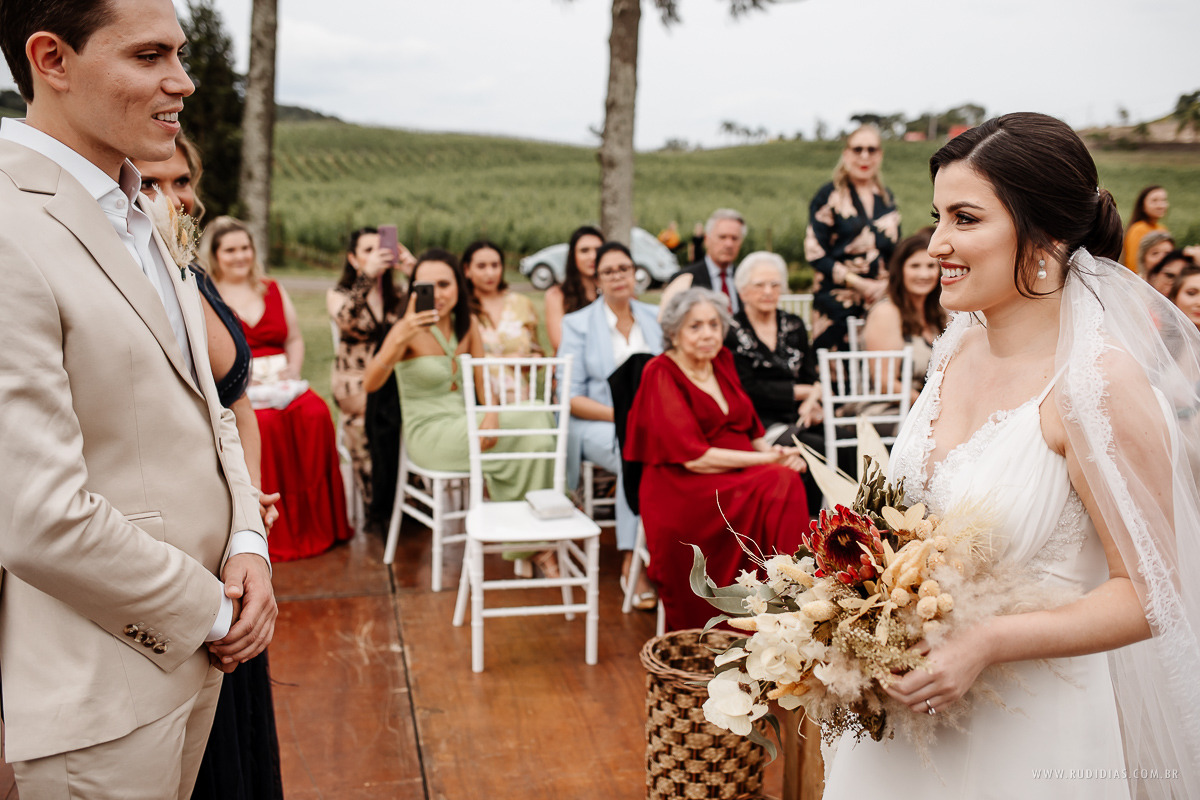 Casamentos diurnos proporcionam um ambiente mais descontraído, perfeito para aproveitar com familiares e amigos. Além disso, o evento ganha um ar acolhedor e harmonioso.