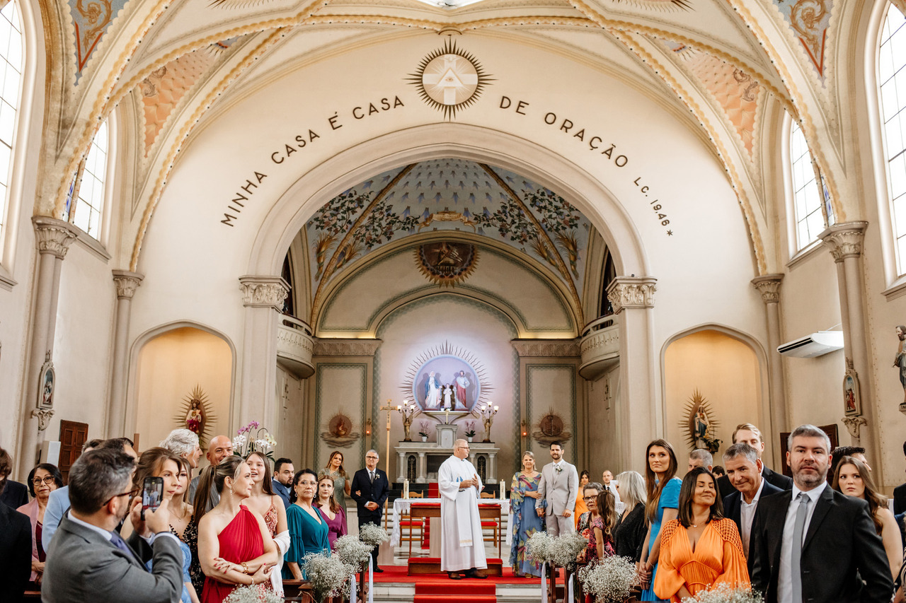 Casar na igreja durante o dia é uma experiência mágica. A luz natural entrando pelos vitrais ou janelas cria um efeito encantador, tornando cada momento ainda mais especial. E o melhor: as fotos ficam simplesmente espetaculares!